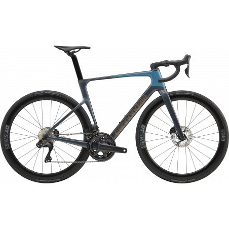 Vitesse optimisée pour la compétition à pleins gaz. Le cadre carbone 5e génération ultra-léger est équipé de roues carbone DT Swiss ERC LOG 45 montées sur des moyeux DT Swiss 370. Le système Shimano Ultegra Di2 garantit des changements de vitesse d’une précision « électronique ». Le cintre Vision Trimax Carbon Aero et la potence Cannondale C1 Conceal forment une partie avant abaissée et efficace, tandis que les freins à disque hydrauliques Ultegra restent performants et fiables lorsque le rythme s’accélère et que les virages se succèdent à vive allure. Conçu pour maintenir la cadence.